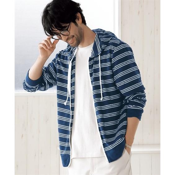 インディゴ パイル ボーダー パーカー メンズ ジップアップパーカー ジップパーカー ブルー ネイビー きれいめ カジュアル Improves インプローブス 通販 Yahoo ショッピング